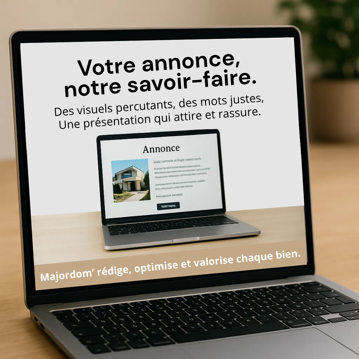 La performance d’une location commence par une image forte et une annonce soignée. Chez Majordom’, nous associons photographie professionnelle, rédaction experte et diffusion optimisée. Grâce à la précision du digital et à une stratégie de visibilité ciblée, chaque bien trouve son public. Nos outils connectés garantissent une mise en avant efficace sur les plateformes les plus performantes : Airbnb, Abritel et Booking.com. L’alliance du visuel, du contenu et de la technologie fait de chaque annonce une réussite.