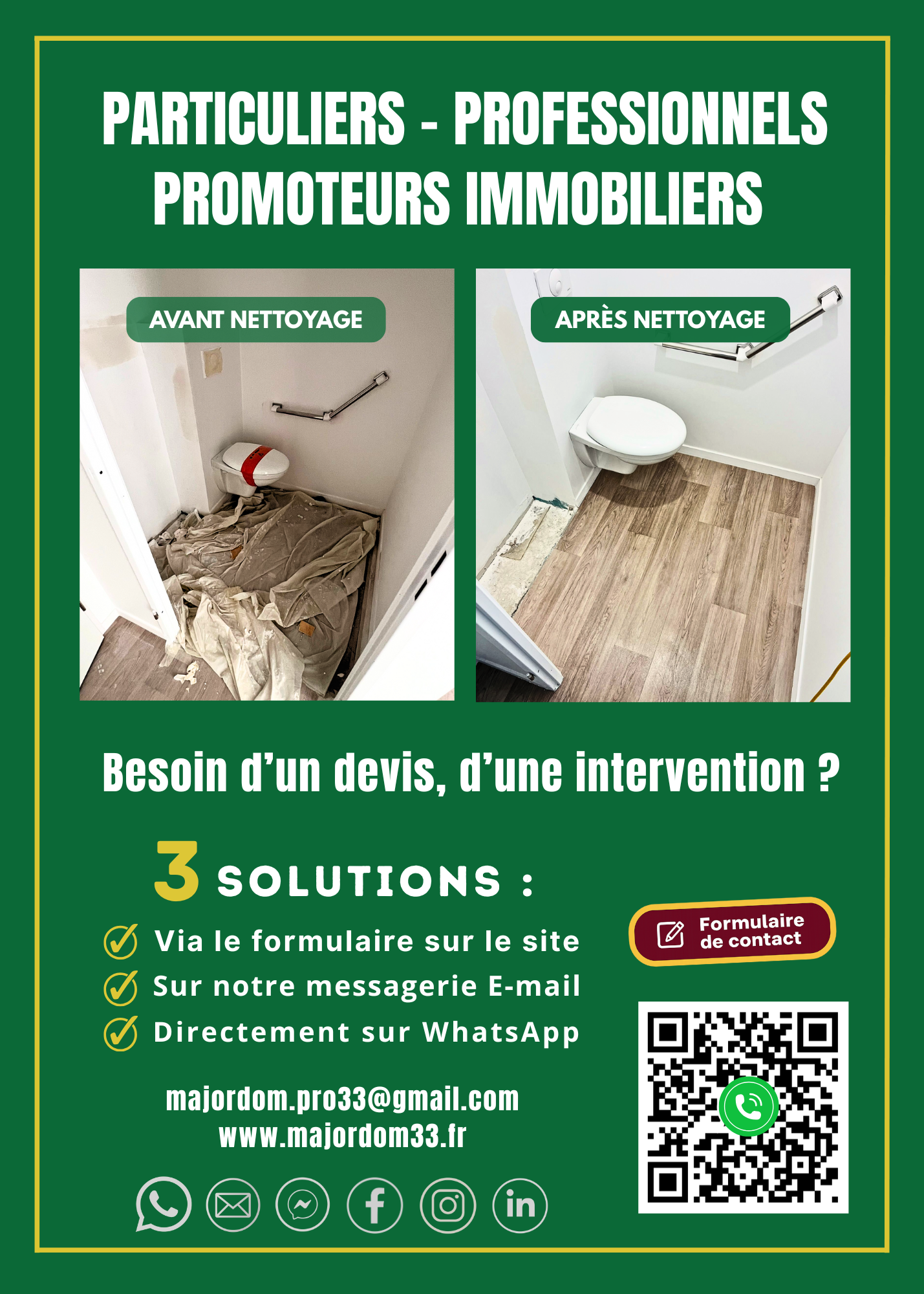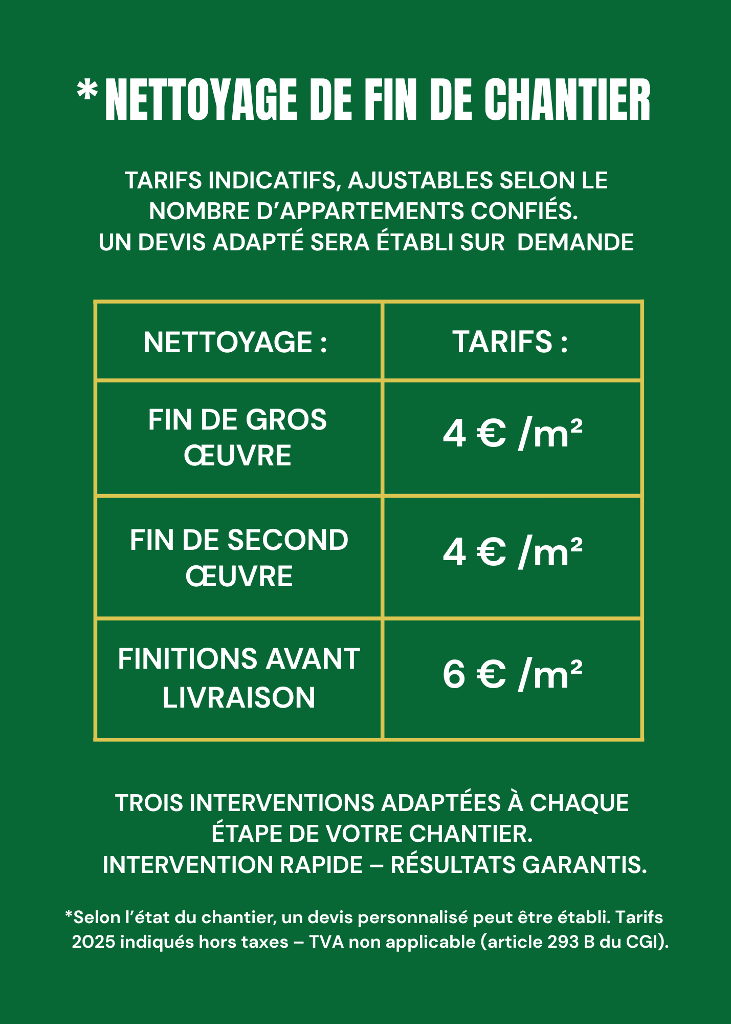 Tarif du Forfait Clé en Main se situe entre 350 et 650 € selon la surface du logement / estimation sur place.