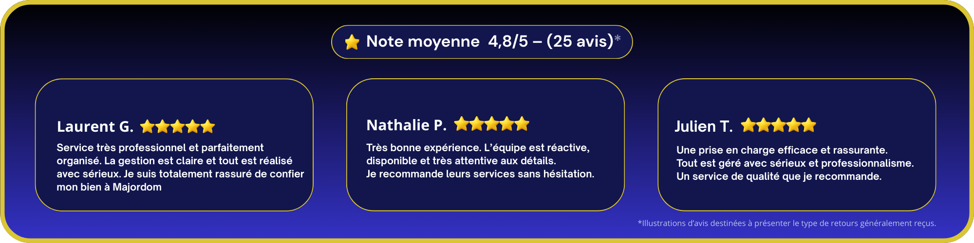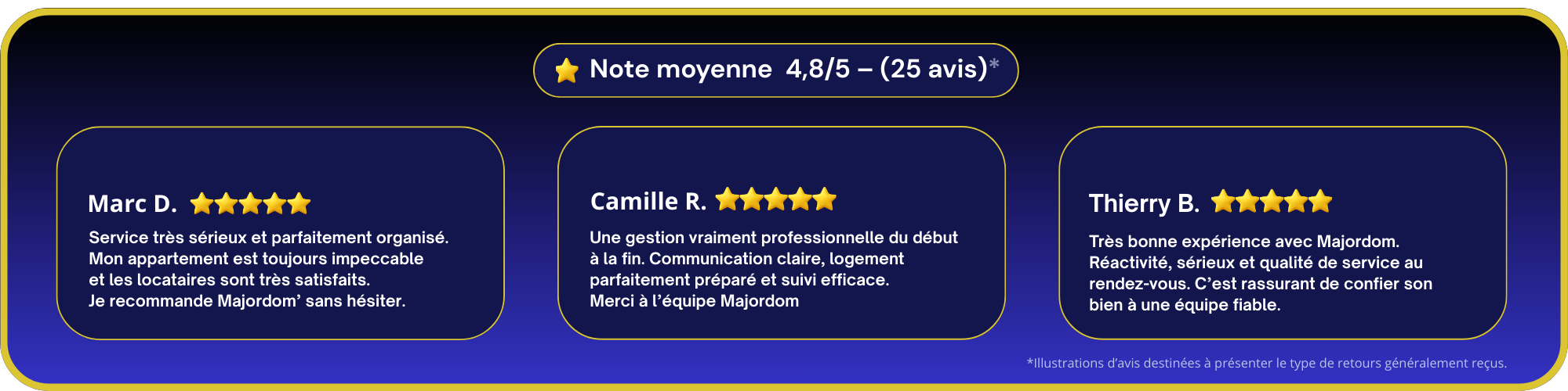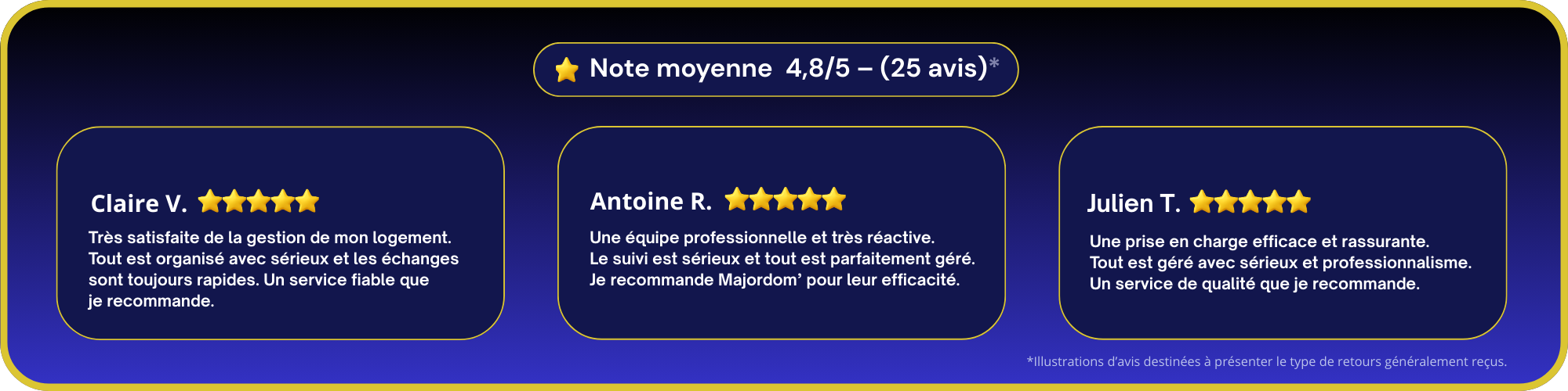 Gérer un bien à distance peut vite devenir complexe. Annonces, accueil, ménage, coordination… chaque détail compte. Avec Majordom’, vous déléguez à une équipe organisée et réactive. Votre bien est suivi avec rigueur, vos voyageurs satisfaits, vos revenus optimisés.