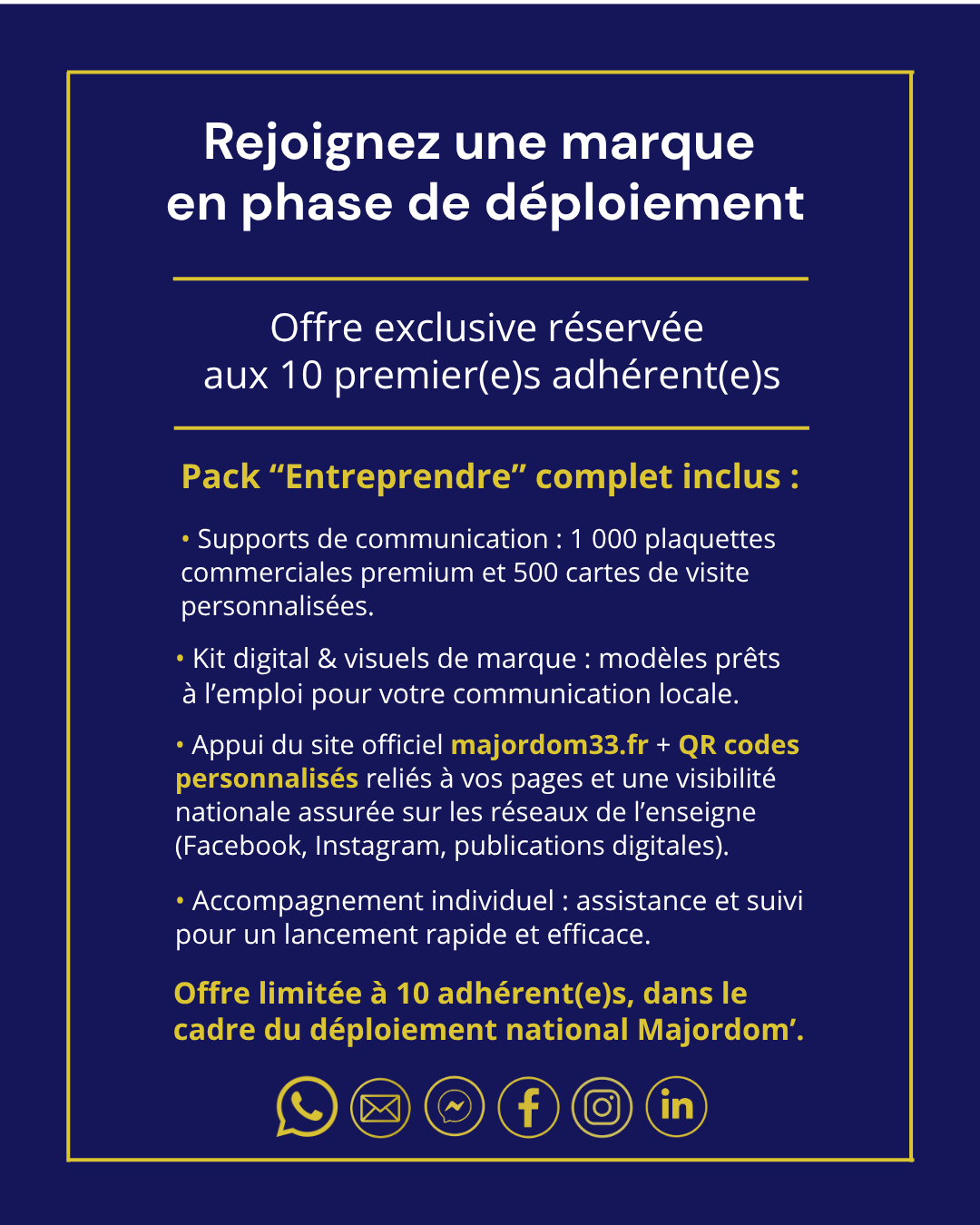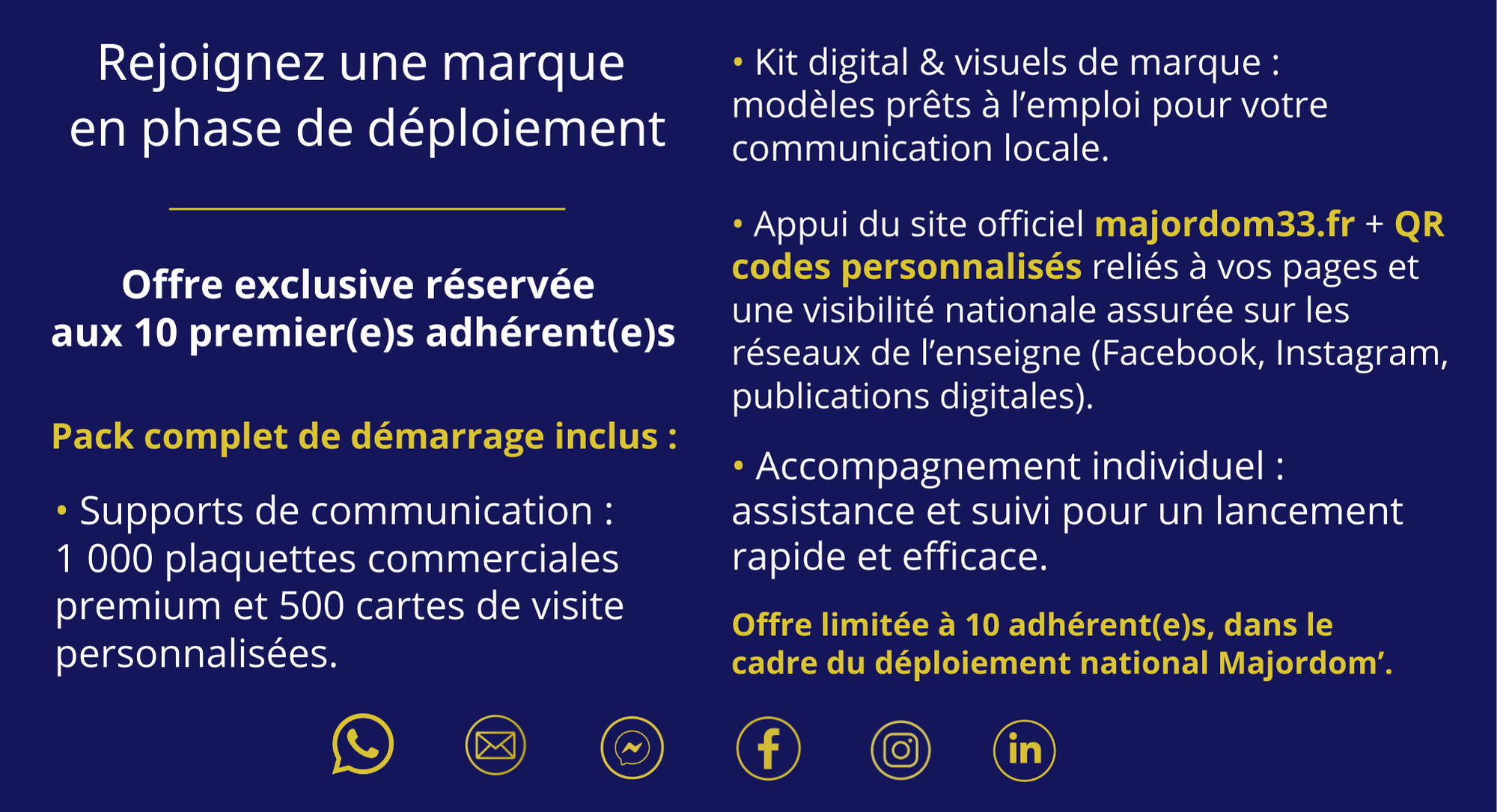 Derrière Majordom’, il y a une vision : celle de professionnels fiers, exigeants et solidaires. Notre ambition est claire : offrir à chaque partenaire les moyens d’exceller, de grandir et de bâtir un succès durable.